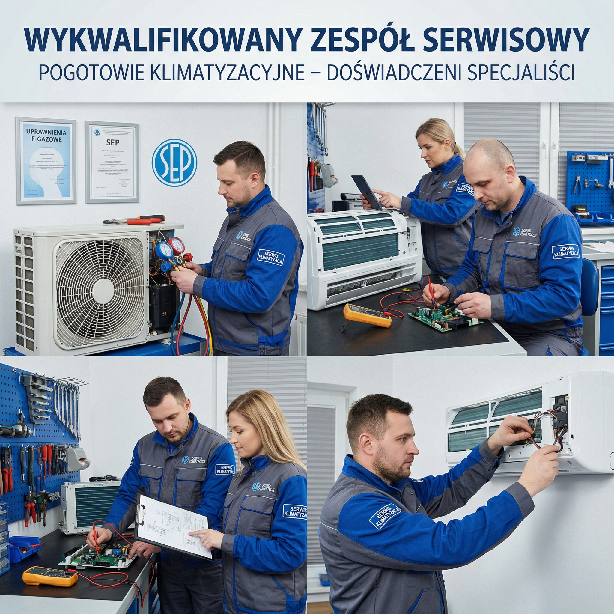 - Certyfikowani serwisanci z uprawnieniami F-gazowymi i SEP