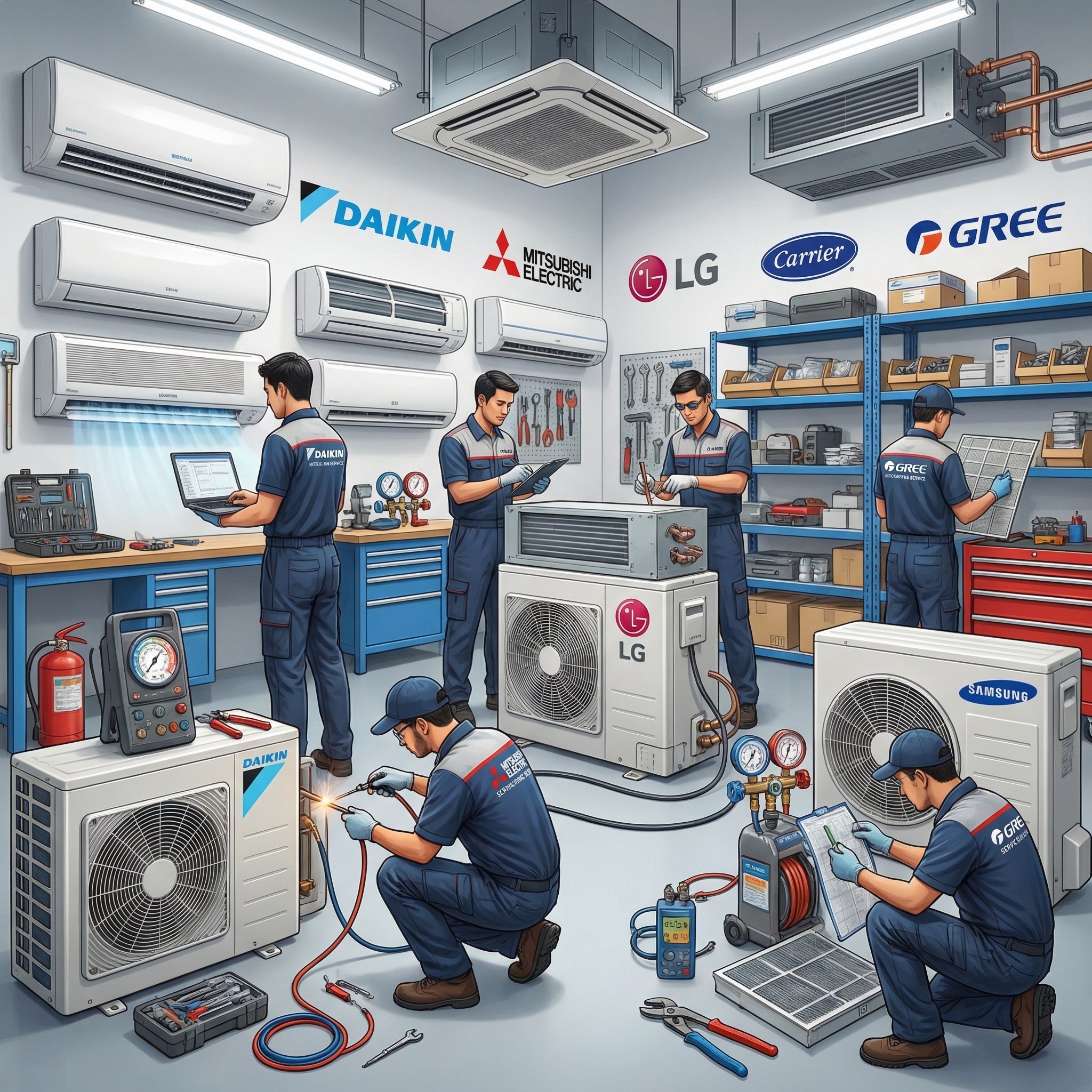 - Wieloletnie doświadczenie w naprawach wszystkich marek klimatyzacji